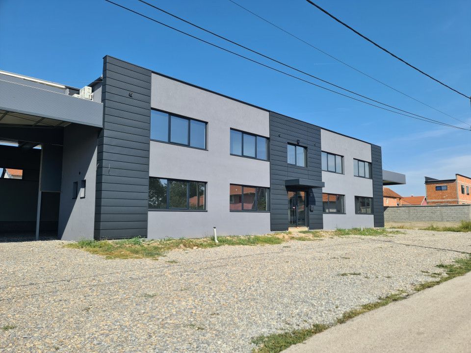 Proizvodno-skladišni kompleks pozicioniran je u Šimanovcima, gde posluje veći broj reputabilnih kompanija poput Bosch, Atlantic groupa, PFI , TRIMO ing, LOŽ, Agena, Lagermax, Doming, Dr. Oetker, Kleemann.\nReč je o proizvodno-skladišnom objektu ukupne površine 3.690m2 koji je izgrađen na zemljištu površine 10.000m2. Građevinski, nepokretnost predstavlja kombinaciju čvrste gradnje i panela. Čitav kompleks je ograđen I pristupa mu se direktno sa saobraćajnice. Ispred I oko objekata je izgrađena interna saobraćajnica I parking za vozila. \nProizvodno-skladišni objekat ima površinu od 3.690m2. U čeonom delu objekta nalazi se savremen kancelarijski prostor (površina kancelarija je cca 440m2) na koji se nadovezuje proizvodna hala sa svim infrastrukturom za zaposlene. Pod u objektu je industrijski a snaga struje je 150 kw a poseduje i gasni priključak. Visina proizvodnog dela objekta je 10.5m.\nProizvodni deo je opremljen sa četiri krana nosivosti 1.6t, 1.7t, 2t i 500 kg.\nU okviru hale se nalazi i savremena lakirernica.\nČitav kompleks je ograđen u savremenog izgleda i u potpunosti operativan za poslovanje.\nVlasnik nepokretnosi pravni lice